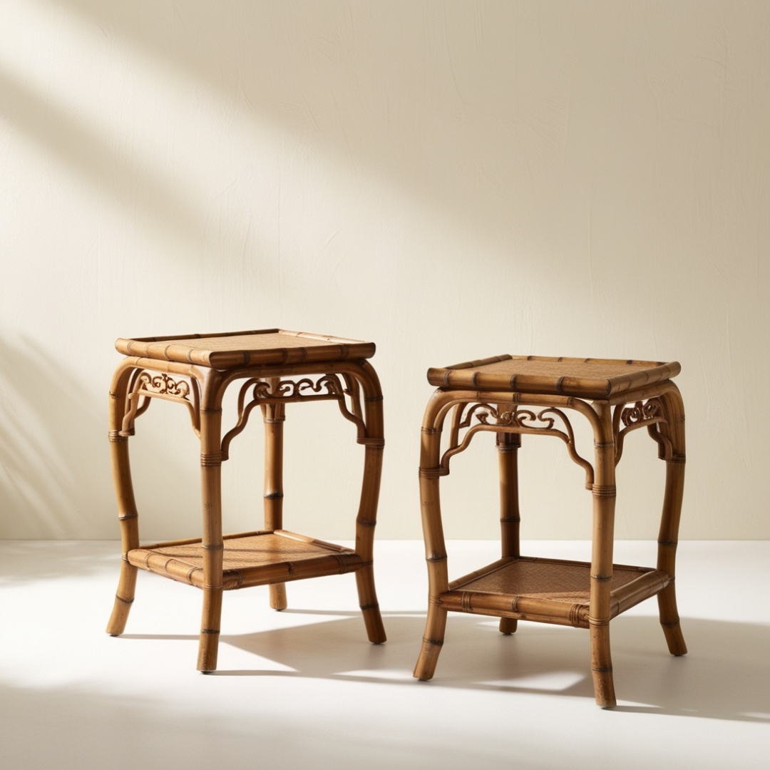Bamboo Side Tables with Decorative Carvings-E